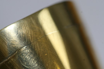 Solder Trials revealed its lighter colour due to the greater reflectivity and less abrasive resistance, possibly because it was less ‘tough’ and ‘sticky’ than the surrounding gold alloy.