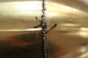 Spinning, demanded a processing environment of heightened sensitivity to predict the change in material properties, although there was a longer working window of material deformation allowing the metal to create the body shape there was a sudden work hardening of the alloy at the end. This work hardening was so abrupt that Coe the spinner actually cut his finger.