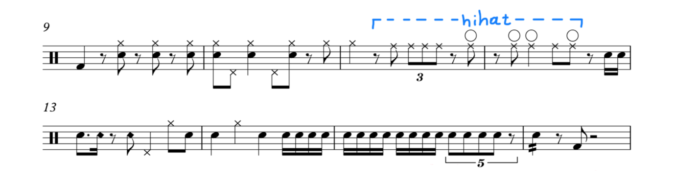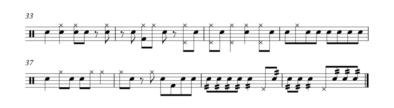 -replace the woodblocks and cowbells with sounds of a modern drumkit.