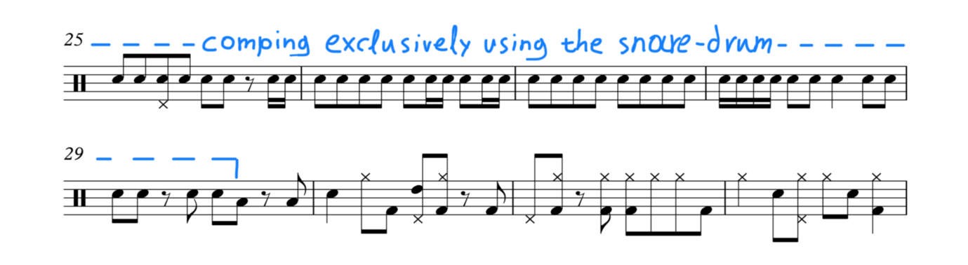 Here you are! You have created a comping very similar to Jack Dejohnette’s comping on R.P.D.D.