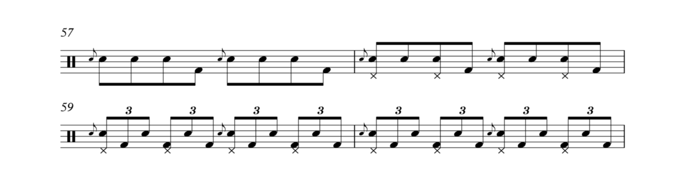 In this recording, McCoy and Tony don’t hesitate to play with huge energy already from the first note. McCoy’s drive and flow are so strong that Tony doesn’t need to play time on the ride cymbal. He takes advantage of the freedom he has, to fill the gaps (rests) instead of playing unison with the melody. He creates counter-melodies orchestrated on the whole drumset, focused mainly on the toms.