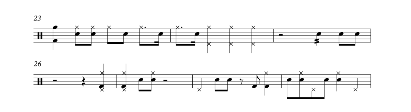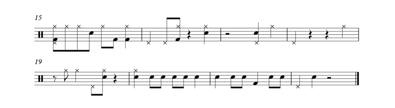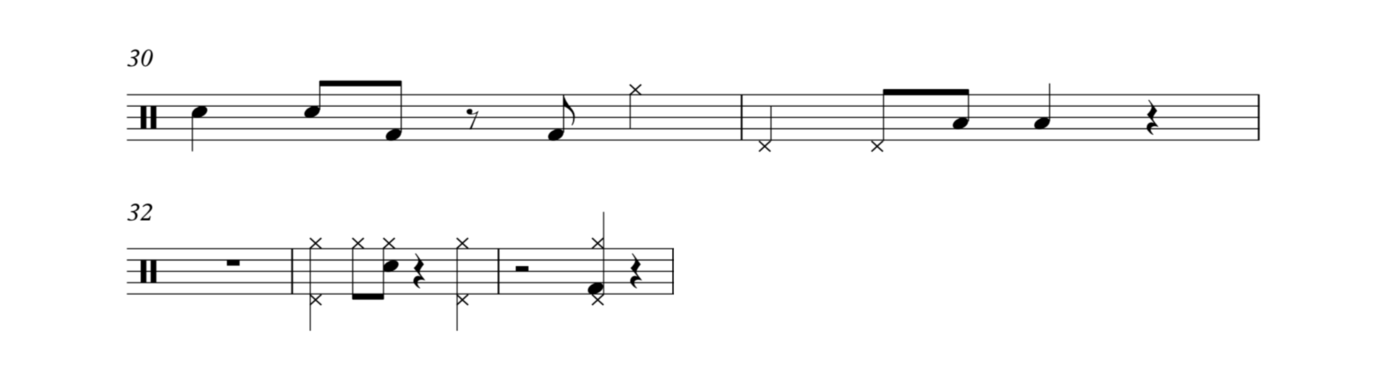 In the theme, Charlie Haden plays exactly the ‘kicks’ (accents) of the melody. Paul Motian never plays the original swing cymbal beat. Instead, he interprets the melody using all his limbs and points out the kicks of the melody as well. He doesn’t play the swing pattern but the swing feel can be heared and felt through his phrasing.