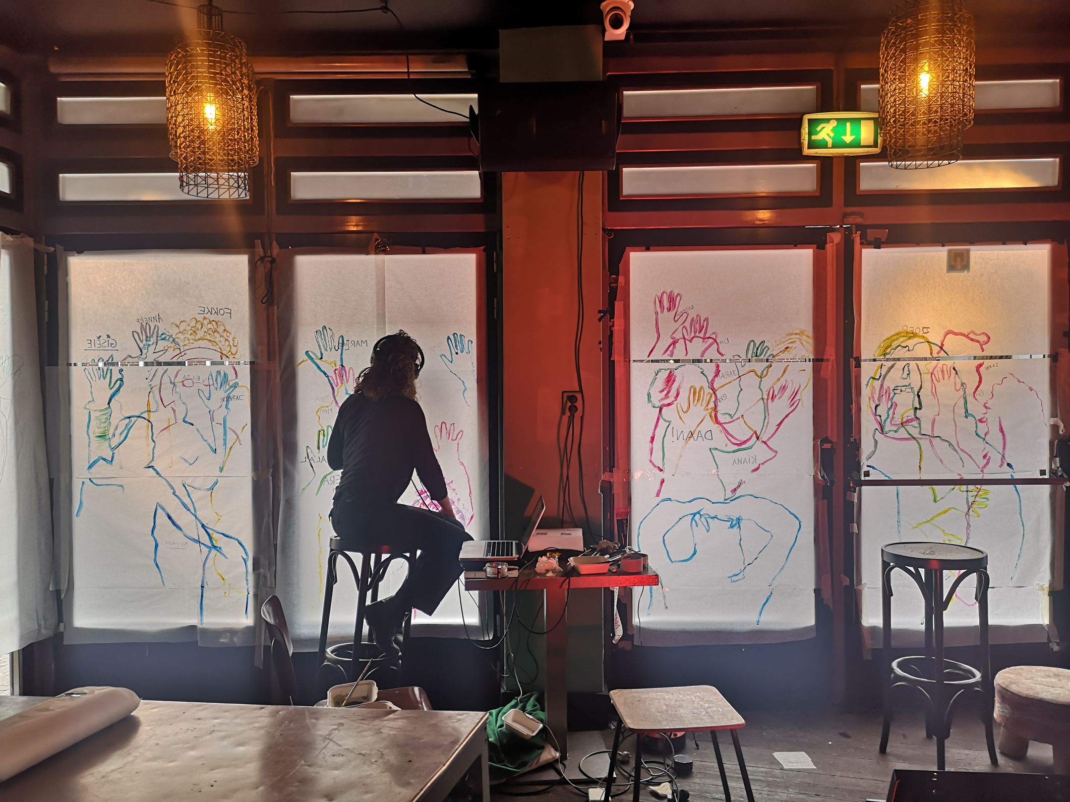 so we can capture their sihouet. We fill the bar again, slowly the scenography grows.