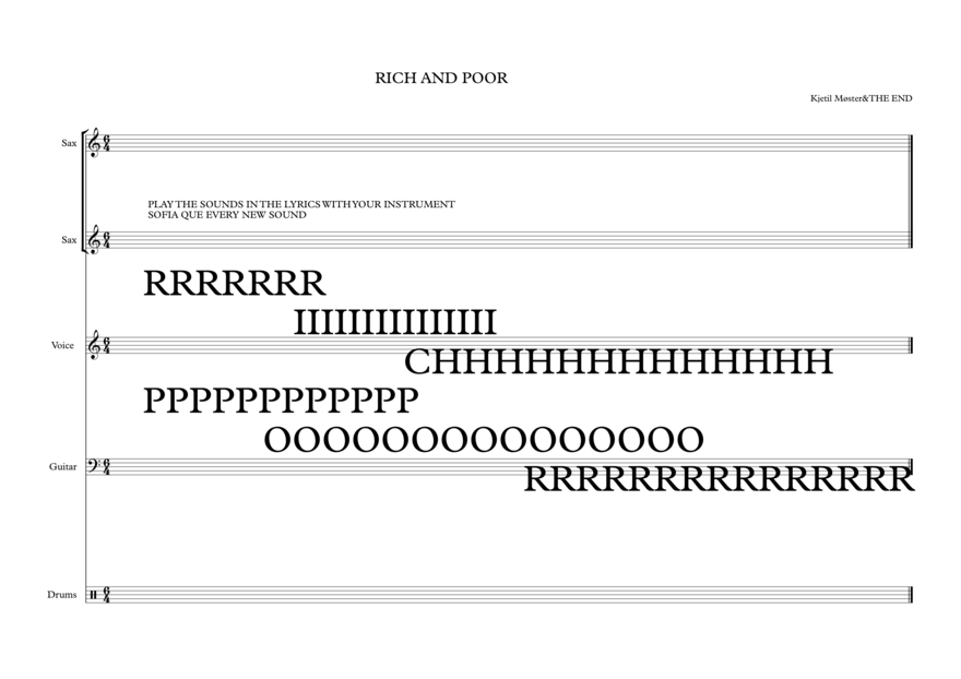 The phonetic composition Rich and Poor gathers the band in sonic coherence by individual interpretations of each letter’s phonetic qualities and transferring them to the instruments. The intro part for Both Sides Out has another way of textually structuring improvisations by giving associative directions. Intention and Release explore a restrictive orchestration of the band, sharply contrasted by Mats’ ruptures by the end of the song.