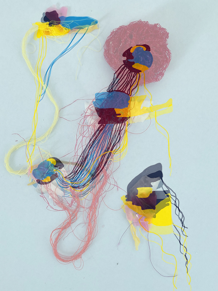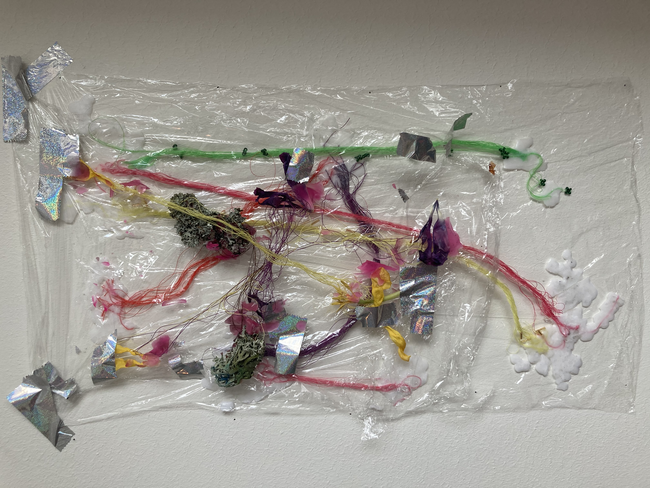 Something I will take from this to develop further is to incorporate different materials into knitting to see if I can achieve this same overflow in organic and graphical and the use of 3D elements such as the moss, trash, and findings to emphasize on 2D to 3D in other materials.