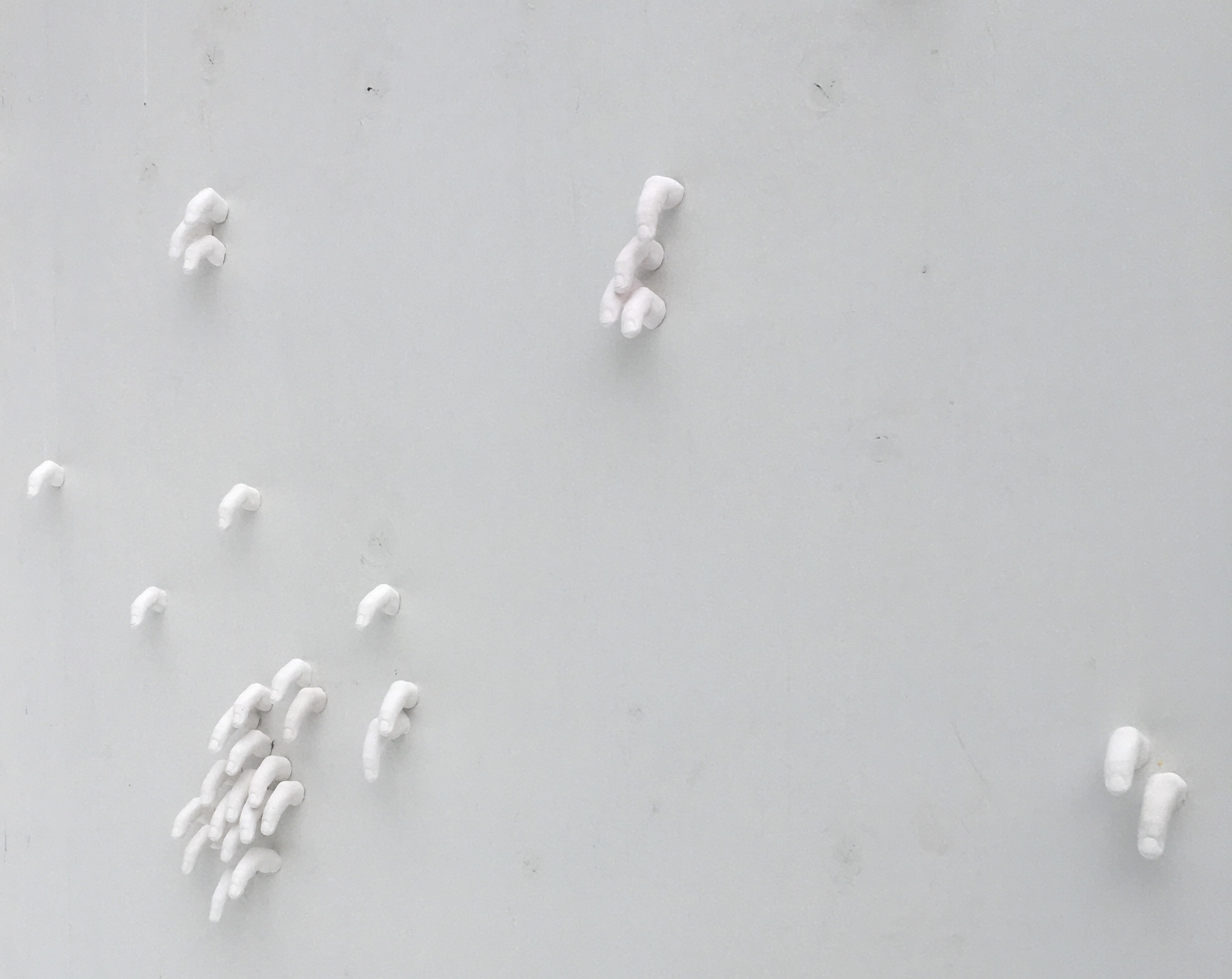 I wonder, whether the clumsiness in this work may be related to the concrete nature of the work. The excess of the fingers, there are so many! And working with them, it is so heavy! Or the clumsiness could come from something being too much. Too much flesh, too many limbs and fingers, too many thoughts. Excess of thought, surplus of thoughts, that creates this clumsiness?