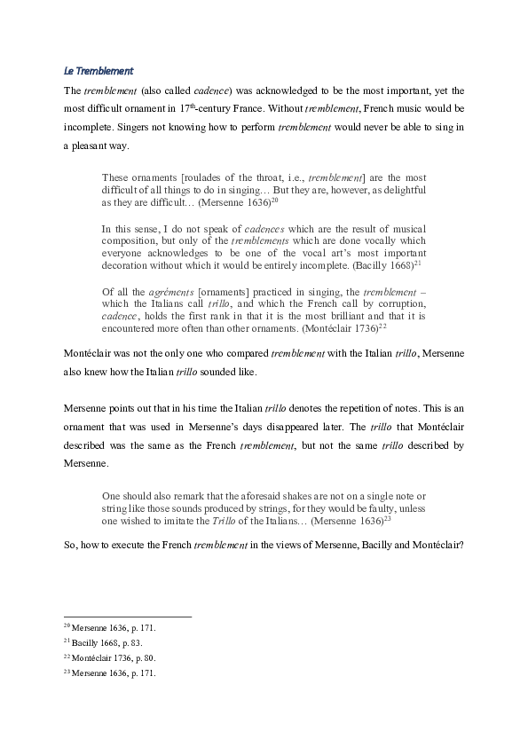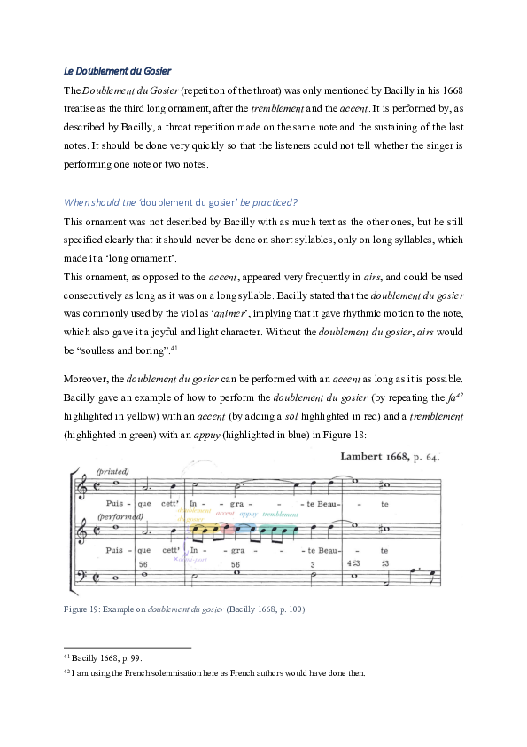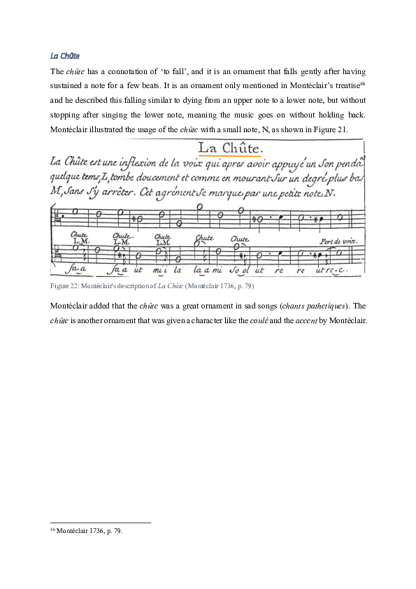 This chapter mainly focuses on listing the French vocal ornamentations. Selected ornaments will be discussed in detail.