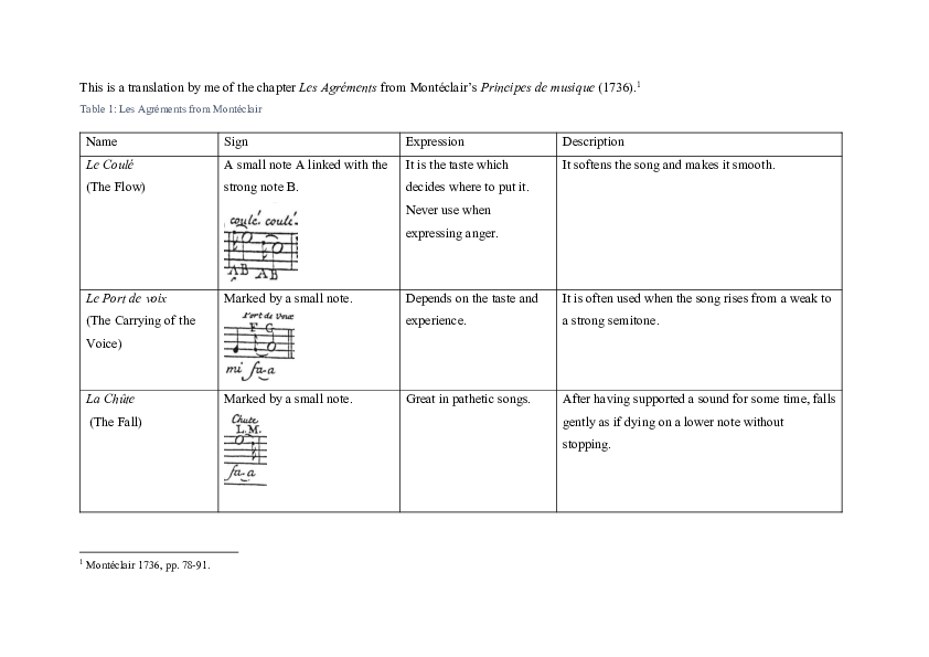 Translation of the chapter Les Agréments from Montéclair’s Principes de musique (1736).3