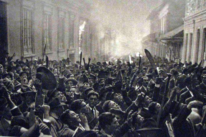 Ahí, van diciendo las fechas desde el 9 de abril del 48 hasta el presente en las cuales han sucedido grandes revueltas populares. Los bailarines dicen la fecha y el lugar, y el músico responde con el nombre del evento.