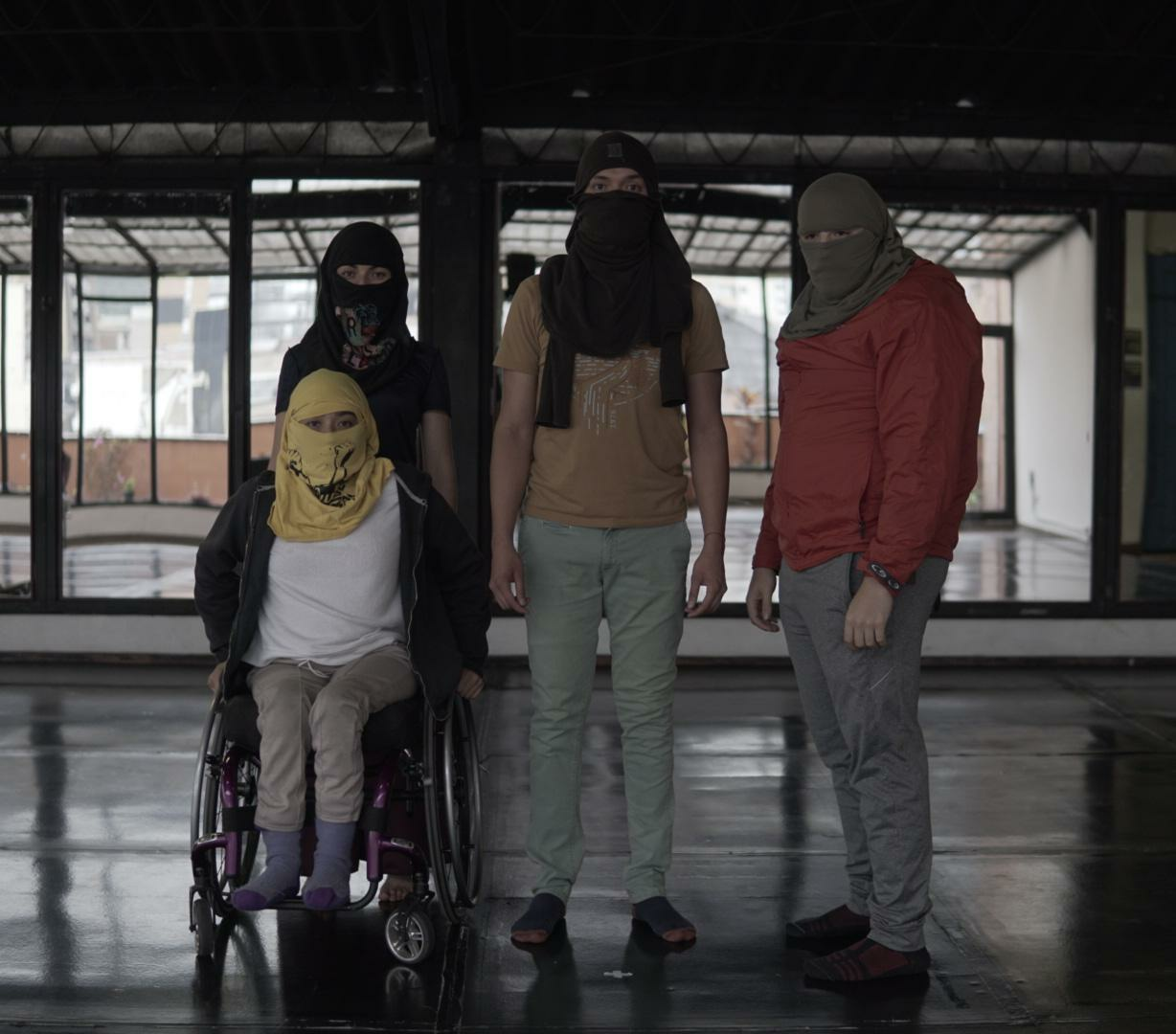 - Pose develada. Adelante Chris y Mateo en repetición, detrás lore y Laura con Gaitán muerto,