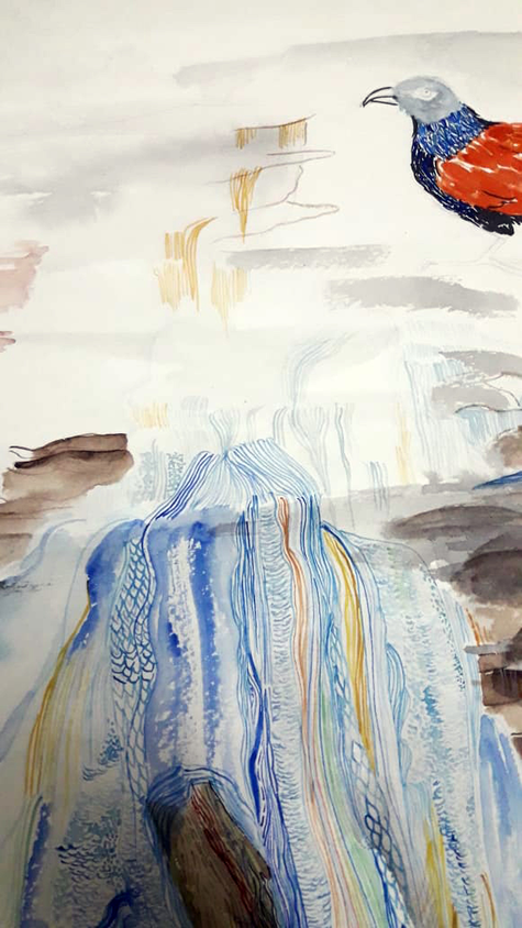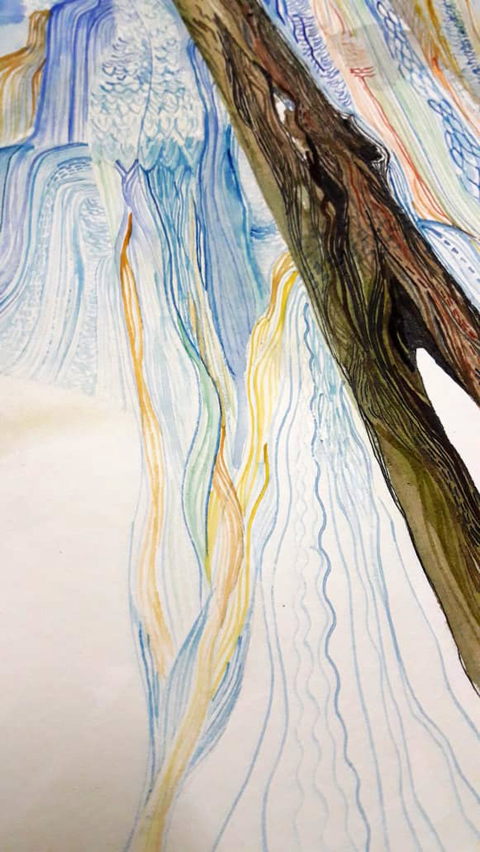 This exposition explores the question of creative justice in creative processes and pedagogy. Through an evolving conversation on a chat app, a mentor shares her creative process of a painting that she is emerging with her students at the Masters level. And interwoven through these, they evolve a pedagogy of artistic research, pedagogy, decolonization, reflective inquiry into self, aesthetic encounters with their own cultures, Indian aesthetics and philosophies, meandering and pondering together. The exposition is constructed in four parts.