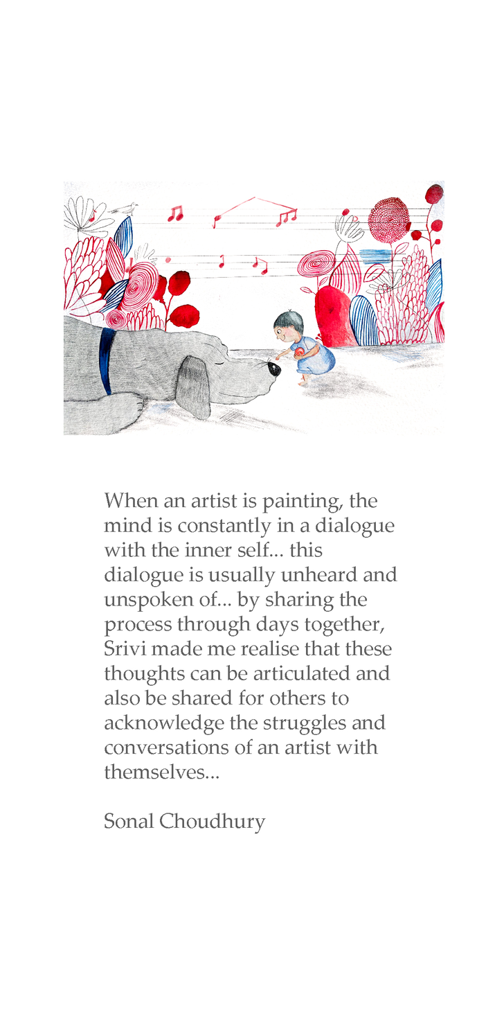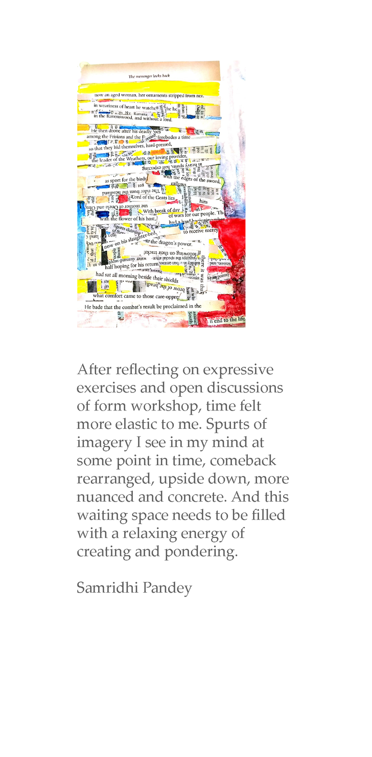As a time right after the final submission of my doctoral thesis, as I wait for the final defense to be set up, I am in an in-between space that is overwhelming. The journeys of the last six years have come to fruition, and yet I am mentally and emotionally exhausted by my work for the thesis and my work at the college and all the other personal struggles in between. However, my students embrace my struggles, coming along on this slow gentle walk of a painting with me, allowing me to calm down, gather myself and find new beginnings.
