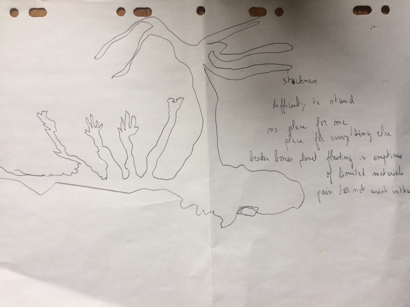 Follow the line to watch some extracts of the experiments made with the performers, my reflections, their reflections, our thoughts and their drawings.