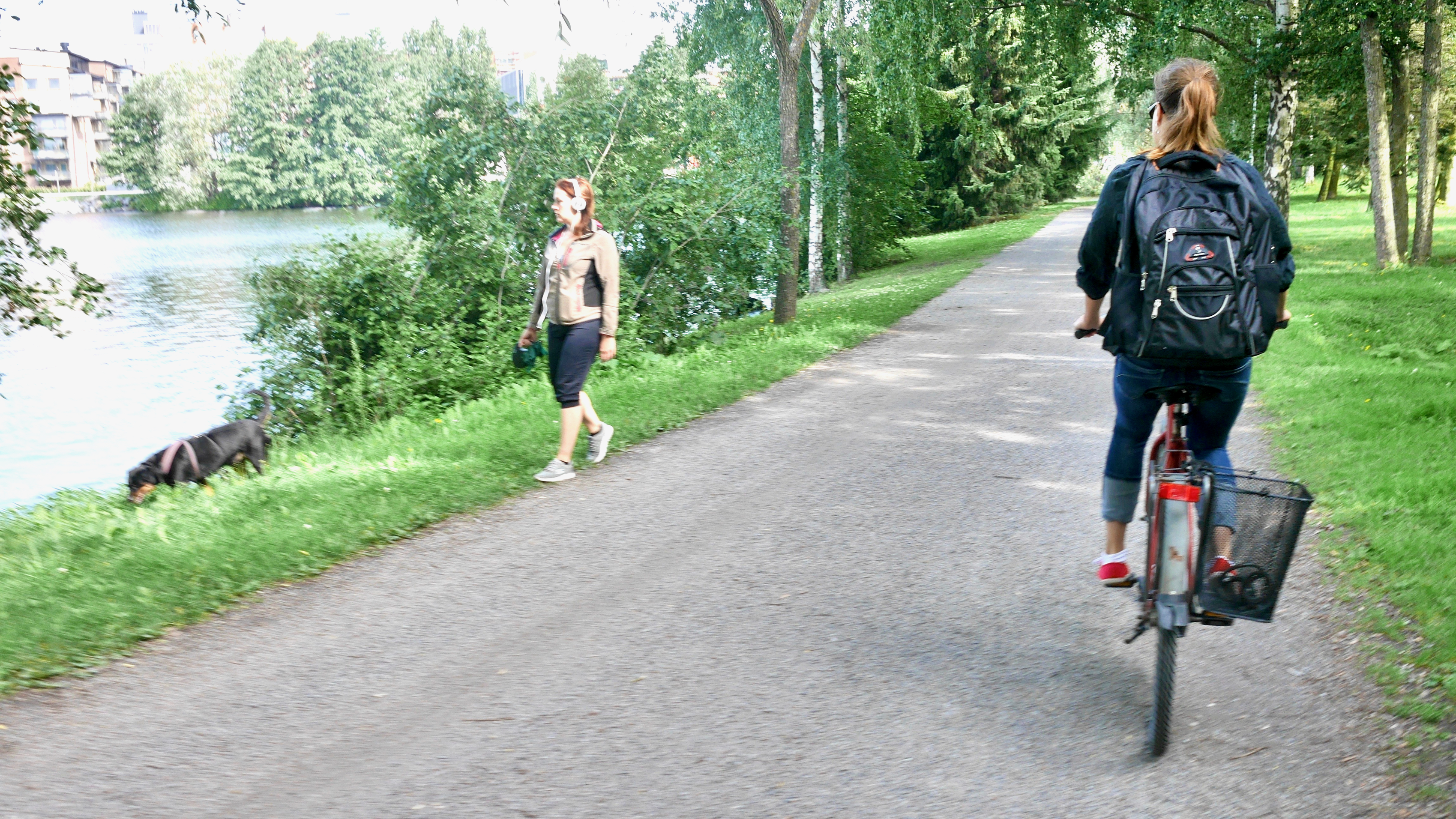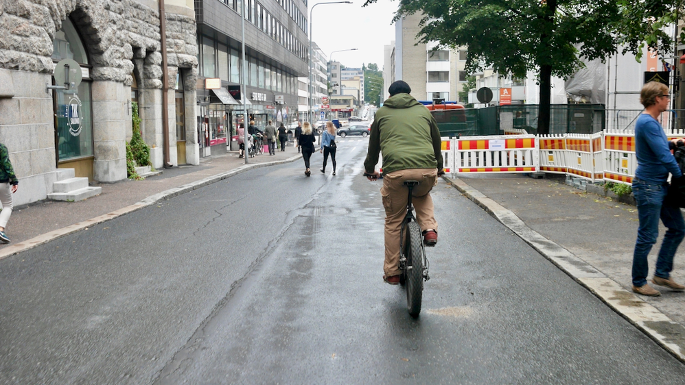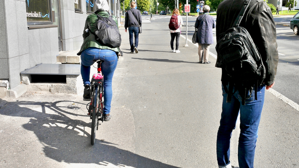 ”Missä ihmiset rikkoo eniten liikennesääntöjä, missä pyöräillään eniten jalkakäytävällä, sinne tarvitaan niinku pyöräteitä ensimmäiseks. Se tanskalainen Michael Colville-Andersson, niin sillä on tää, et vaik jossain puistossa katotaan mihin polut syntyy ja tehään sen mukaan ne tiet. Se ois käyttäjälähtöstä se pyöräteiden suunnittelu. Periaatteessa ihan yksinkertaisia juttuja. Aika harvoin pyöräilijöille soitetaan kelloo, jos ajaa liian hitaasti. Mut toi on tietty semmonen liikennesuunnittelullinen haaste, et pyöräilyyki on niin paljon erilaista ja miten kaikki, ja tarviiko kaikkien olla samalla väylällä. Et voiks suunnitella pyörätiet, joita käyttää arkipyöräilijät ja urheilupyöräilijät käyttää ajorataa. Et vois se olla joustavampaa.” (Ossi)