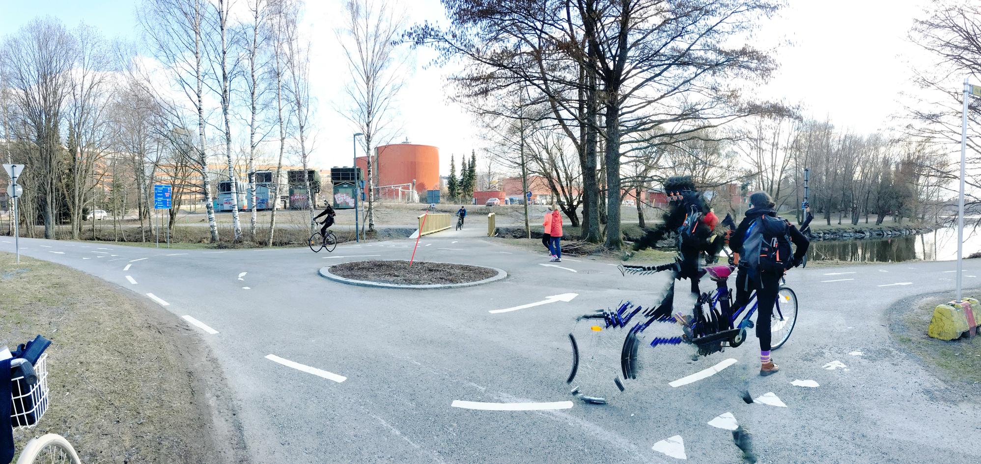 Joku saattaa liukua arkkityypissä toiseen pyörämatkallaan, jotain toista jokin tyypeistä luonnehtii vahvemmin. Itse olen tässä jatkuvassa tulemisen prosessissa Sukkulasta Avangardistiseksi Kukkamekoksi, tietämättä mikä ”olen”. Sillä kysehän ei ole ontologinen vaan pyöräilyni tapahtuu ja muuttuu diffraktiivisessa vuoropuhelussa ympäröivän maailman kanssa ylläpitäen keskeneräisyyttä. Tämä kuulostaa ehkä itsestään selvältä, mutta minusta tuntuu kuin liikennesuunnittelu jollain tapaa hylkisi tällaista liikkujan ja liikenteen vivahteikasta symbioosia. Esimerkiksi villi pyöräily ei nimittäin välttämättä tavoittele hyötyä. Oman liikkumisen poikkeaminen liikenteeseen liimaantuneesta tehokkuudesta vaateesta heijastuu erilaisina arkkityyppien käytäntöinä. Vapauden kaipuu ja nautinto näkyvät eri tavoin tyyppien liikkumisessa luoden käsitystä pyöräilyn utooppisesta, liikennesuunnittelun laiminlyömästä ulottuvuudesta, jota harvoin hyödynnetään pyöräreittejä rakennettaessa kuten käy ilmi Flooran pohtiessa Lahden älypyörätietä. Uusi kestävyydellä markkinoitu pyörätie on rakennettu peruskalliota räjäyttämällä, jotta sen sai aivan ajoradan kylkeen: