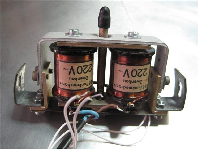 Electro-magnets, recycled from old signal-horns, were used for the left hand, the left knee and the neck element. The electro-magnet integrated into the left knee element is of a different type to the electro-magnets at the neck and left hand and therefore gives a different sensation. The vibrations of the electro-magnets are transmitted through molded rubber shapes. The electro-magnets at the left hand and left knee elements are incorporated into stainless steel soup spoons. A neck support was welded onto the table and comprises the neck element.
