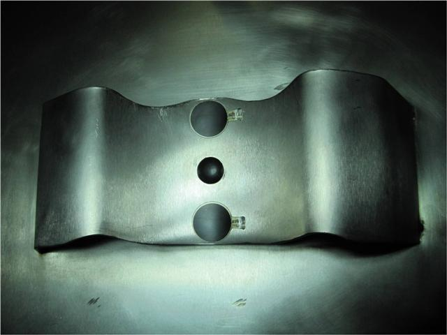 The try-out of Oorwonde at music centre De Bijloke (Ghent, Belgium) in March 2010 revealed that for many people the mapping was too complicated to grasp in fifteen minutes. Therefore two extra FSRs were placed on each hand element in order to control all the elements (except the neck and the buttocks) with the hands. To create a height difference with the surface of the spoon, three FSRs of each hand element were placed on small rubber cushions. This adaptation made it easier for the momentarily blinded user to find the controllers without needing to look.