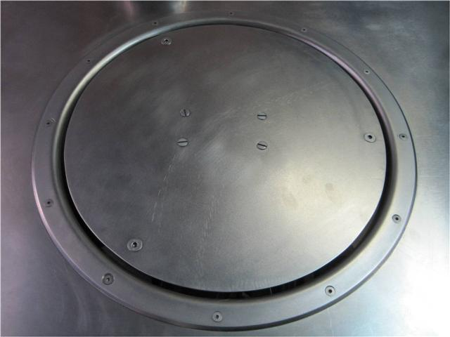 Electro-magnets, recycled from old signal-horns, were used for the left hand, the left knee and the neck element. The electro-magnet integrated into the left knee element is of a different type to the electro-magnets at the neck and left hand and therefore gives a different sensation. The vibrations of the electro-magnets are transmitted through molded rubber shapes. The electro-magnets at the left hand and left knee elements are incorporated into stainless steel soup spoons. A neck support was welded onto the table and comprises the neck element.