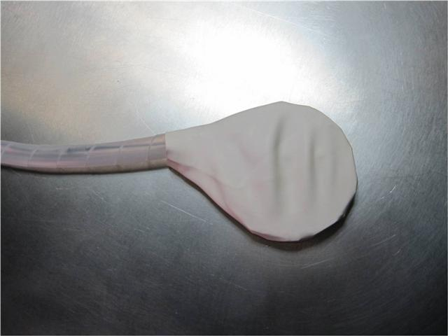 The mouth-piece uses a piezoelectric disc cast in silicone. As this element makes use of bone conduction, the user has to place his or her teeth onto the silicone disc to hear what is emitted. A fresh balloon is placed over the silicone shape for each new patient.