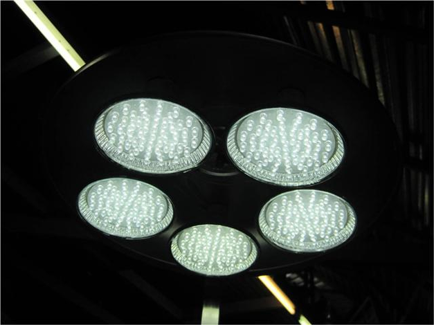 Oorwonde is a very intimate experience where everything is focused on hearing and feeling. To stimulate this, a very bright lamp comprising 5 x 57 white LEDs is mounted at the head of the table so as to shine directly in the face of the patient who has no other possibility than to close his or her eyes. The light stimulates the patient to concentrate fully on sensing and hearing.