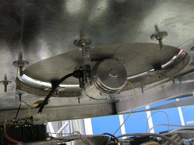 Underneath the table four bolts hold up two strips of steel that carry all the steering equipment: an 8-channel soundcard, a laptop, a controller for the electro-magnets, a controller for the speakers, a controller for the vibrator motor and an ARMmite microcontroller.