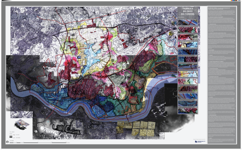 The collision of the analogue with the digital [3], with precise georeferencing that wraps the drawings over the LIDAR imaging, serves to ground the diagrams in the physical world and emphasise that these ideas are not hypothetical but could have a reality. These ideas could be interpreted to fit the region like a glove.