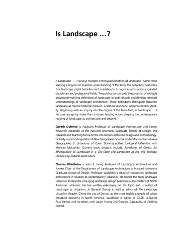 Moore, K. (2016) 'Is landscape Philosophy?', in Doherty, G. and Waldheim, C. (eds.) Essays on the in Identity of Landscape: Routledge.
