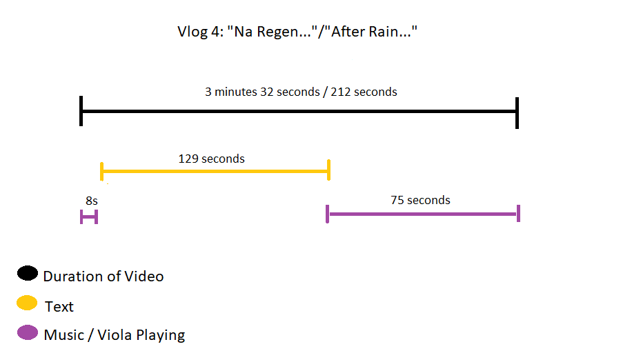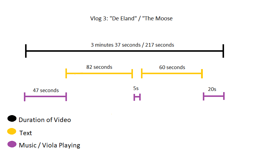 Although in this video had more music than text (see Appendix D), it felt like a perfect balance of vlogging and music. I think the musical performance does not feel as long as it is, due to the three things; firstly the more active viola performance, secondly the different clips of birds and bird counting, and mostly the inner movement of the excerpt itself.