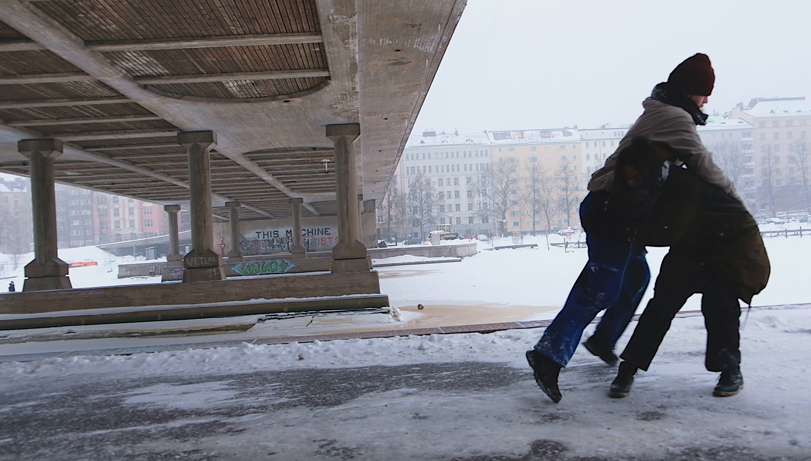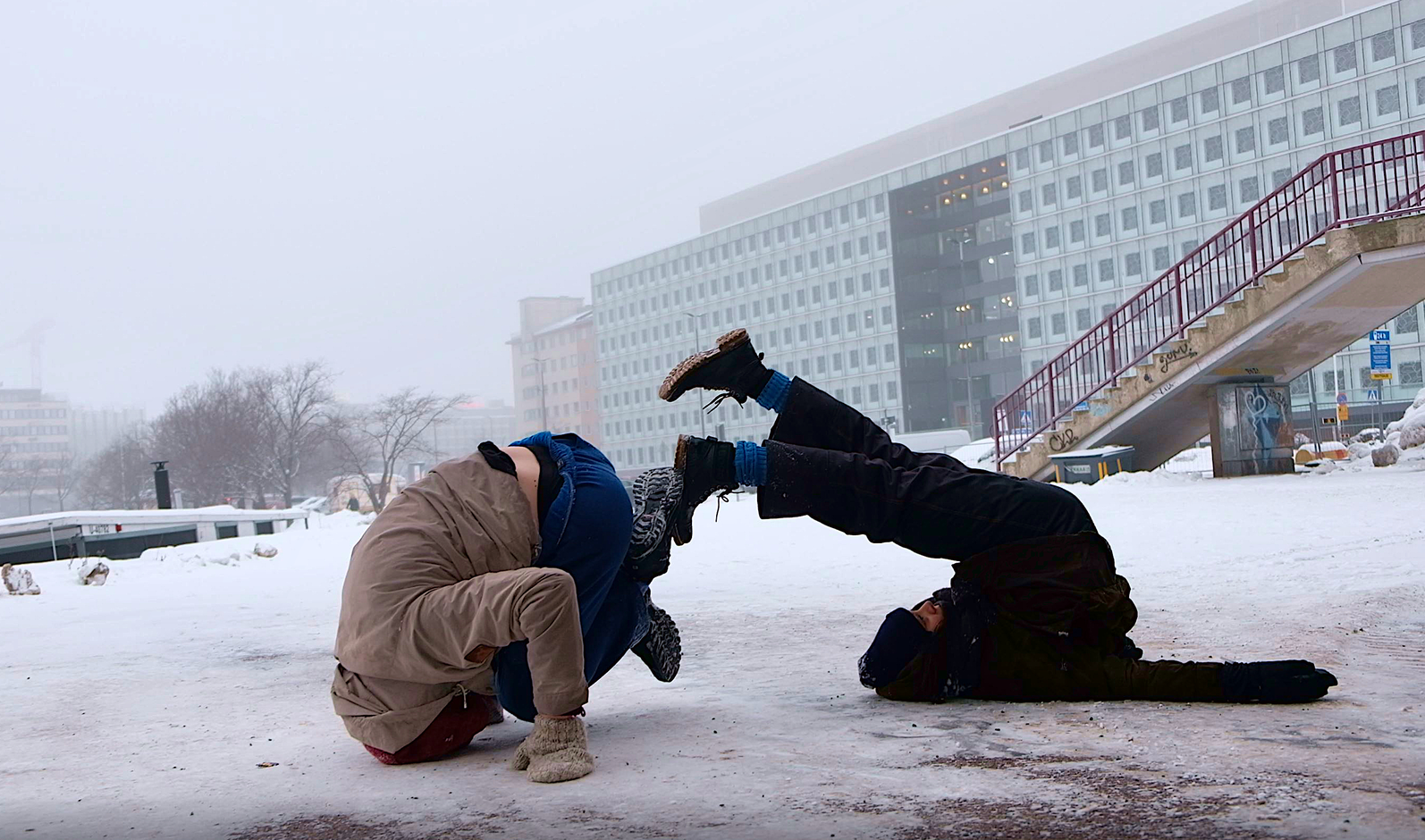 Tunsin tasapainottelevani projektin aikana oman fyysisen kokemukseni sekä näkemieni, visuaalisesti potentiaalisten kuvien välillä. Pidin mielekkäänä tarkkailla liikettä tilassa toisaalta hieman ulkopuolisena dokumentaristina ja toisaalta pyrkiä välillä ikään kuin osalliseksi liikettä, kuljettamalla kameraa tanssijoiden liikkeen mukana ja välillä melkein kiinni heissä. Oli myös herkullista huomata etsivänsä ja löytävänsä esimerkiksi erilaisia väripareja tanssijoiden ja ohikulkijoiden ja tilan välillä. Ymmärsin myös, miten tärkeää oli, että oma toimintani ja tutkimukseni kulki kuin kehämäisesti tai spiraalin omaisesti ensin tanssia ja liikettä itse tunnustellen, sitten kuvaten ja lopuksi palaten takaisin keholliseen kokemukseen. Ne kömpelöhköt ensi askeleet joulukuisella mökkitiellä tuottivat tietoa, jota pystyin hyödyntämään pyytäessäni kollegoita tanssimaan kameralleni Helsingin kaduilla, ja toisaalta palatessani takaisin tanssisaliin harjoittamaan salaa kontakti-improvisaatiota ystävieni kanssa, huomasin kantavani mukana kehossani kaikkia niitä kokemuksia, jotka olin saanut jakaa heidän kanssaan tämän tutkimuksen aikana.