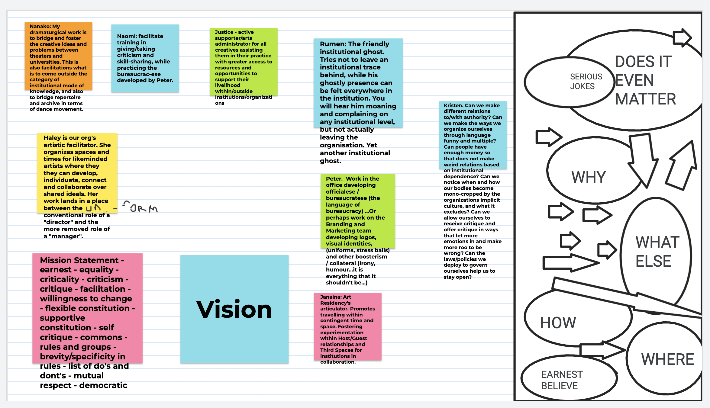 Here is the video recording of Workshop A3 where participants were asked to think of an aspect of an institution/institutions of pedagogy they were most interested in speaking about, in the context of our keywords identified in Workshop A1 and A2. We spoke about which skills or experiences we each would be most interested in contributing to a future organization. These ideas were organized into a collaborative working document called Jamboard. This session concluded with reflections on the previous sessions as well as a discussion about of future meetings and the PSi conference in 2022.