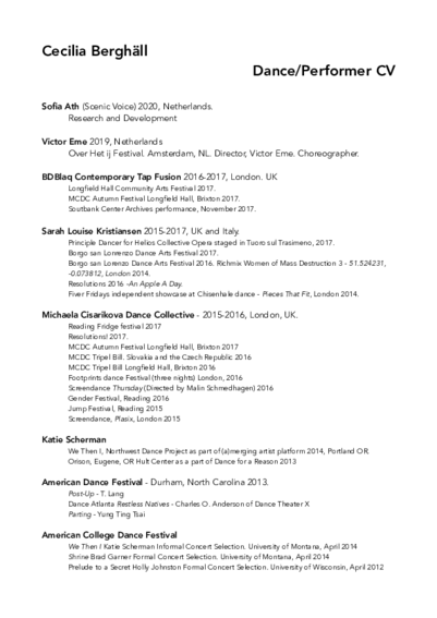 - University of Oregon Repertory Dance Company 2012 and 2013 2007-2018.