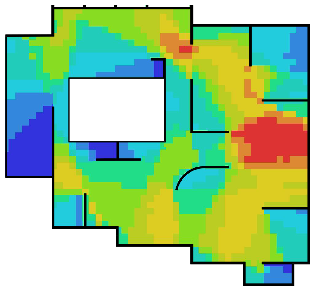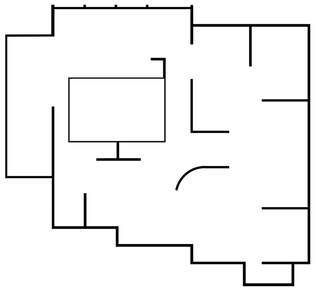 Biological anticipation is closely related to the architectural plan and its challenges. At this point, we could return to hippocampal activity and its effect in predicting trajectories of a motion. As researcher E. Charambulous observed, it is much easier for an individual to navigate and create movement paths in urban spaces than interior space because in an urban environment a person finds landmarks on which to rely[1]. In an enclosed space, as in this case of the exhibition, anticipation is an extremely complex process that requires a great deal of imaginative effort on how and where to move to assemble the exhibition fragments into a single image. What anticipatory image is projected by the human is reflected in his/her trajectories of movement. A particular interest is related with those cases where a human makes a mistake, repeating the same paths several times, as this indicates that there is a greater tension between the architectural space and the person in those places. In such places, the individual either lacks landmarks from architecture or receives an excess of them. These places can be called ruptures. In the case of the exhibition, it can be observed that the rupture occurs where the plan of the space (Fig. Factual plan of the space, Fig. Alternative plan of the space) does not correspond to what a person actually experiences (Fig. Biological integration map).