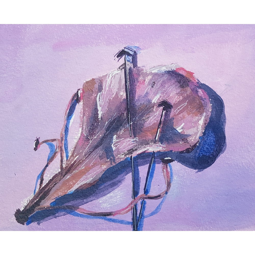 My subject for this semester was Bodydysmorphia. The first two works focus on how you can perceive yourself differently from how you are seen, they talk about self-loathing. The last painting is a bit different, it shows the euphoria of letting go of expectations and other people's opinions. It shows the strength in accepting that you can’t always change your situation and realizing that you can always change your perspective.