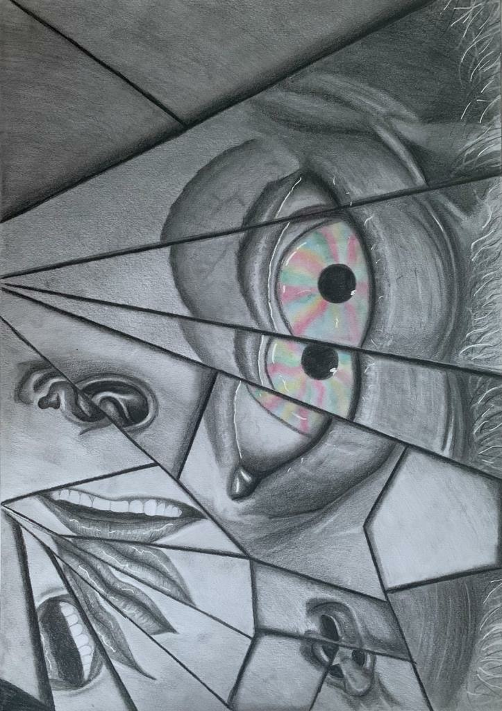 Distorted perception, 2021, graphite, white ink and pastel on paper