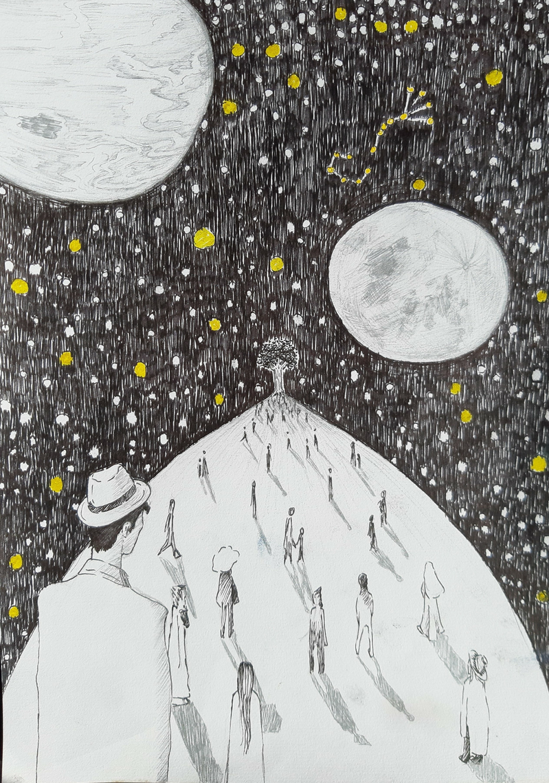 Lone journey, 2021, fineliner and marker on paper