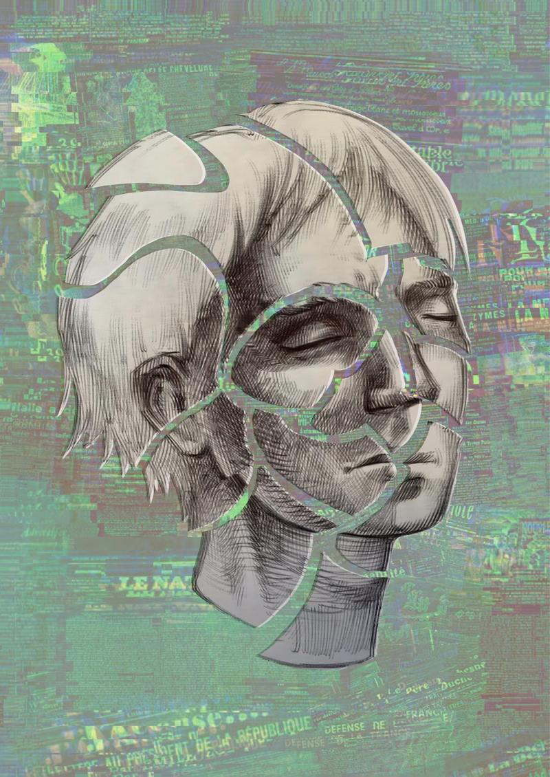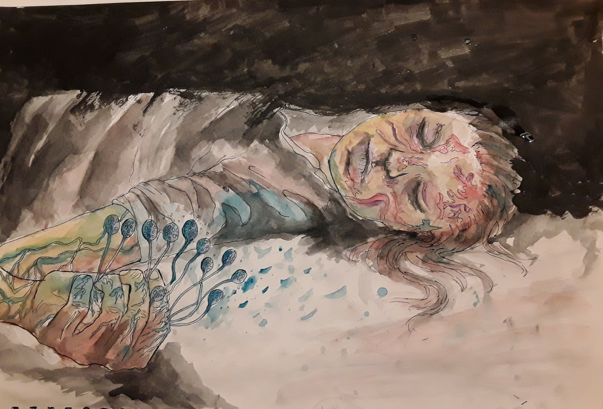 The inspiration for these two drawings was fueled by the intriguing stories of patients suffering from diverse neurologic conditions whom I get to work with during my internship at the LUMC. I have heard stories of patients describing the feeling of slowly losing their grip on their personalities, sensations, perceptions and autonomy. A frightening feeling of slowly losing themselves. Besides these very dark aspects of neurologic conditions, patients also describe feeling more thankful for everyday they live in health and striving to live everyday as bright and colorful as possible. With these two drawings I have attempted to visualize these unique stories.