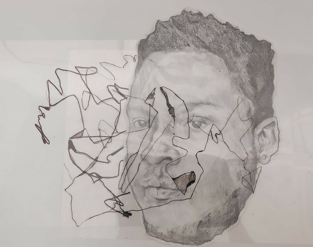 Distorted perception, 2021, graphite, white ink and pastel on paper