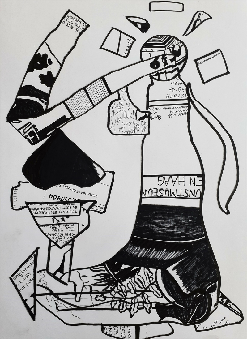 Having selected Hope as overarching theme, Laura Akerboom began to experiment with making collages. Surprisingly, during the process of the course, she developed a strong affinity with the unexpected elements which arose during the process of making. It was this ever returning spontaneous element in particular that sparked her interest to shift from a symbolical theme towards a more formal study of shapes and materials. Following the cycle of producing, evaluating and adapting, she recognized a pattern in her work that can be summarized by the combination of two rather paradoxical terms: Spontaneity and Continuity.