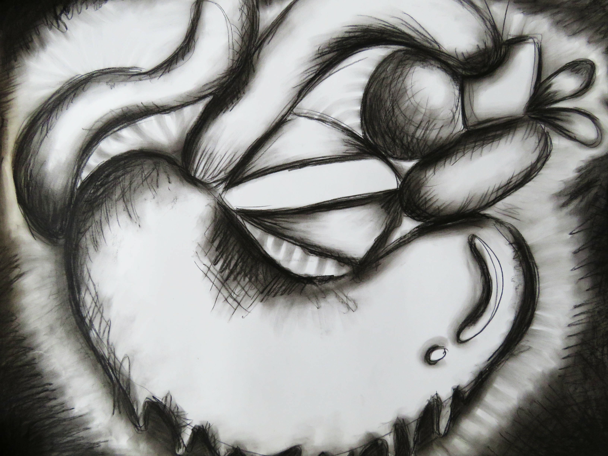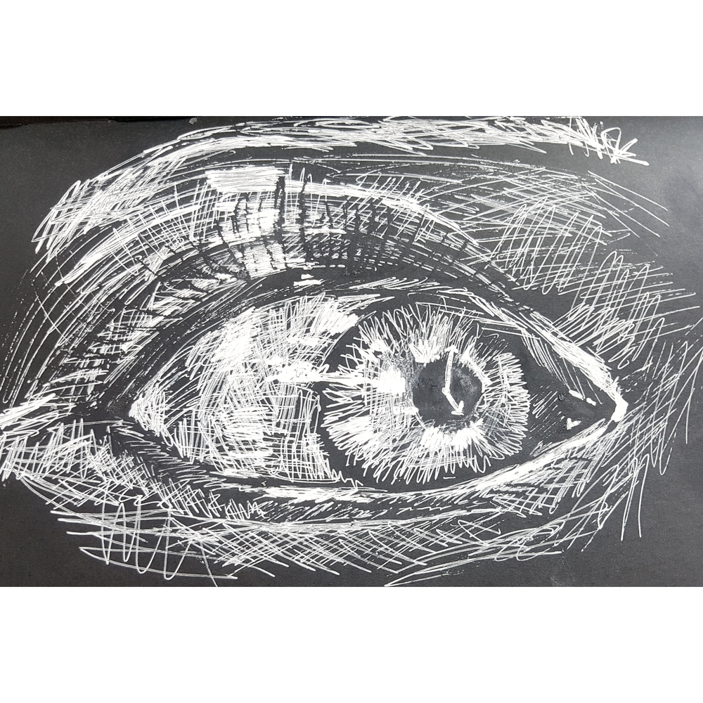 Distorted perception, 2021, graphite, white ink and pastel on paper