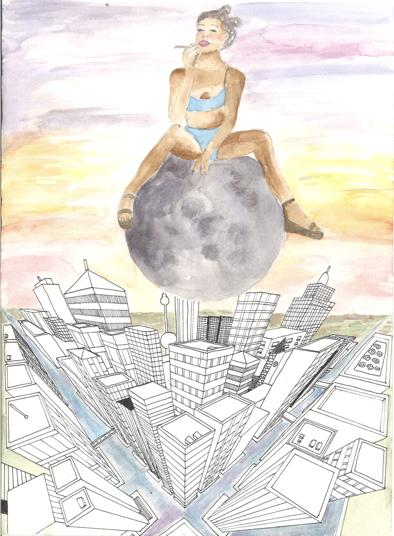 Your head is your universe, 2021, fineliner and water colour on paper