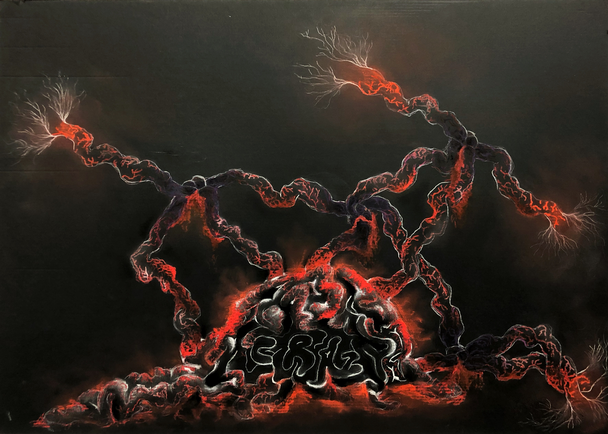 Crazy brain, 2021, oil&soft pastel + pencil