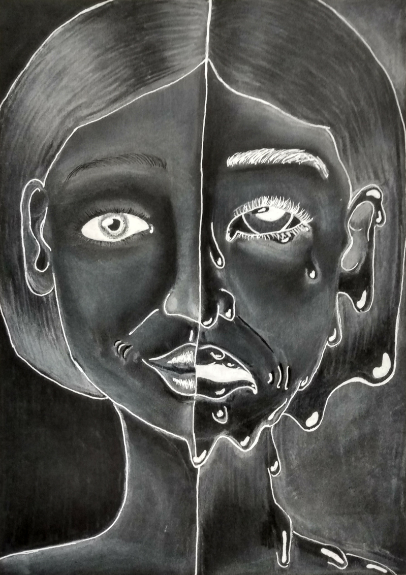 These drawings reflect the way some population groups felt lonely involved during the pandemic. When the urge to feel involved has not been fed, it is inevitable to feel lonely. Last year was filled with moments like these. People were left behind in times where they needed the most support. The blackened drawings present the numbered and fated students, the beloved 2020 newborns and the kids who will not reach their dreams while swimming their way in this world. The grey drawing presents the collusion between my mom and I, which has magnified, partly thanks to COVID.