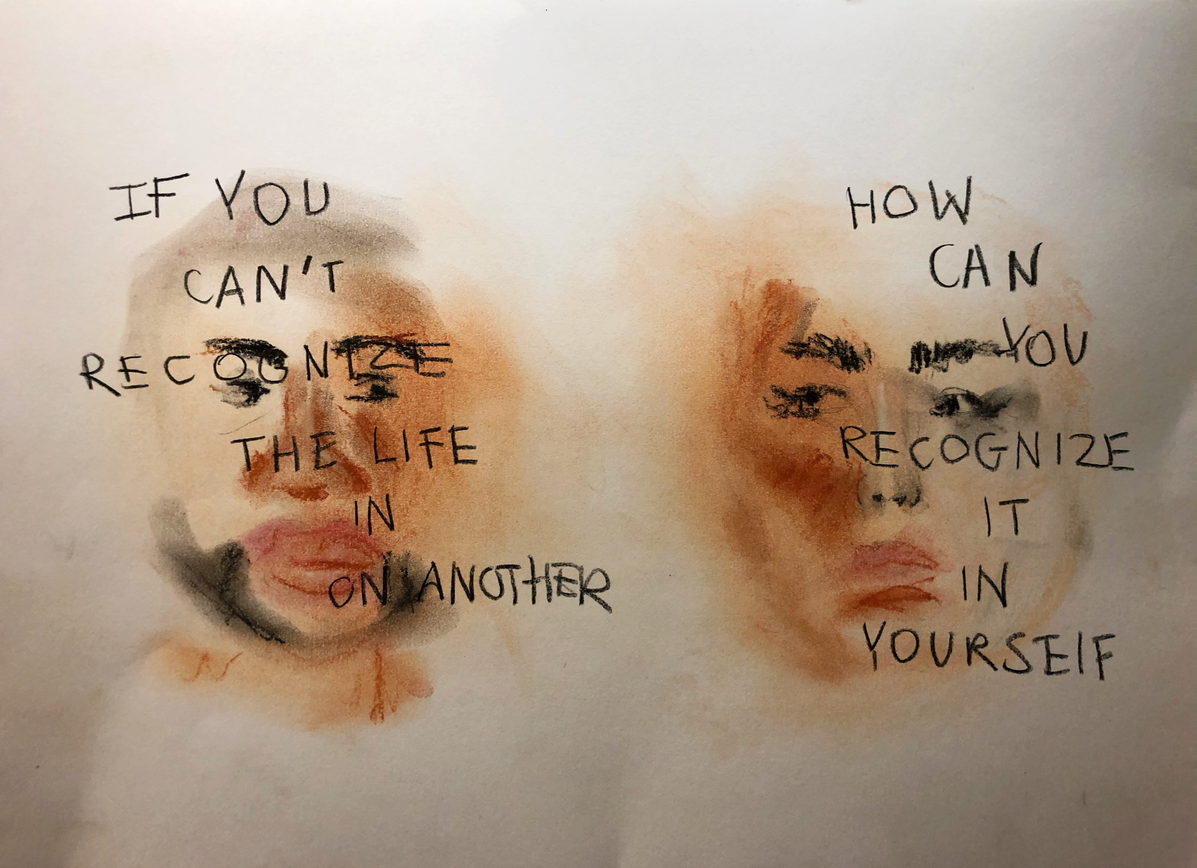 If you can’t recognize the life in on another, how can you recognize it in yourself?, 2021, soft & oil pastel + pencil