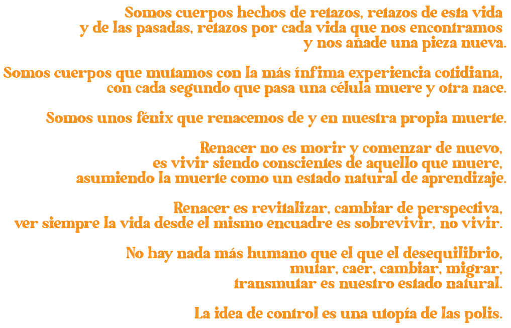 Meter el cuerpo en el archivo, meter el archivo en el cuerpo: una mutua metamorfosis que conjura, crea, segrega, excreta, modulando puntos críticos donde los elementos virtuales y los reales intercambian sus lugares. Utilizada como concepto metamórfico, la interpretación del archivo por parte de Nachbar tiene claras resonancias del concepto de “archivo” desarrollado por Michel Foucault en La arqueología del saber.