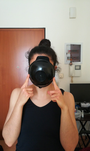 Main movement traits: sudden, abrupt flexion and extension of the torso while moving around the space and start feeling dizzy by this sudden shock of the body.