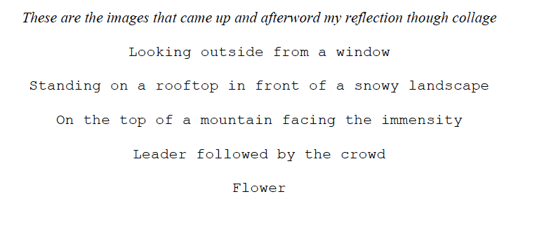 Thus, I decided to go in the studio and ask each one separately an image of power coming into their mind, without thinking too much. Following Jung (1946), with the use of imagery, human beings engage in the development of a dialogue with our unconscious minds, so I thought that thinking about an image could immediately shift the level of control of our will towards spontaneity, allowing the fantasy to merge with reality an reassure our fear of exposition. When they were ready to tell me, they would have called me and describe me the image.
