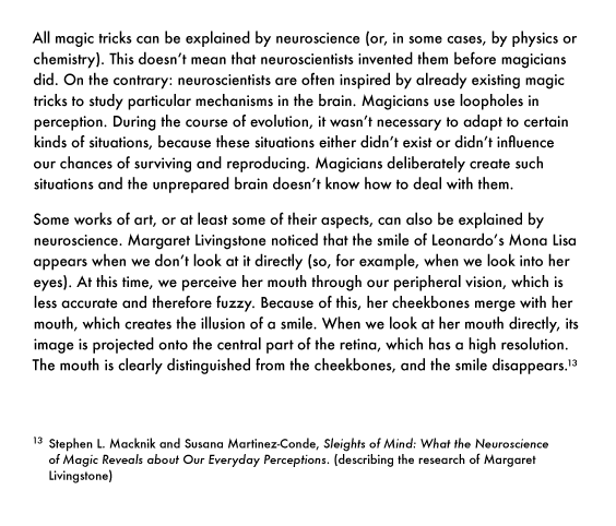 Macknik, Stephen L., and Susana Martinez-Conde. Sleights of Mind: What the Neuroscience of Magic Reveals about Our Everyday Perceptions. New York: Picador, 2010.