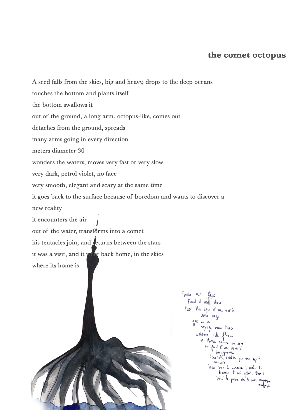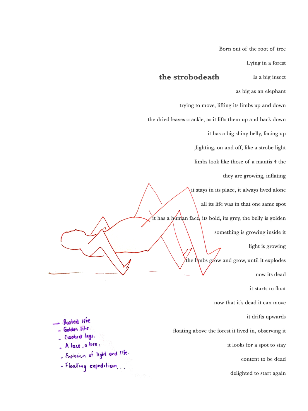 - Once the being is created, I a moment for the participant to either draw it on a paper, write a poem about it or both - with opened eyes.