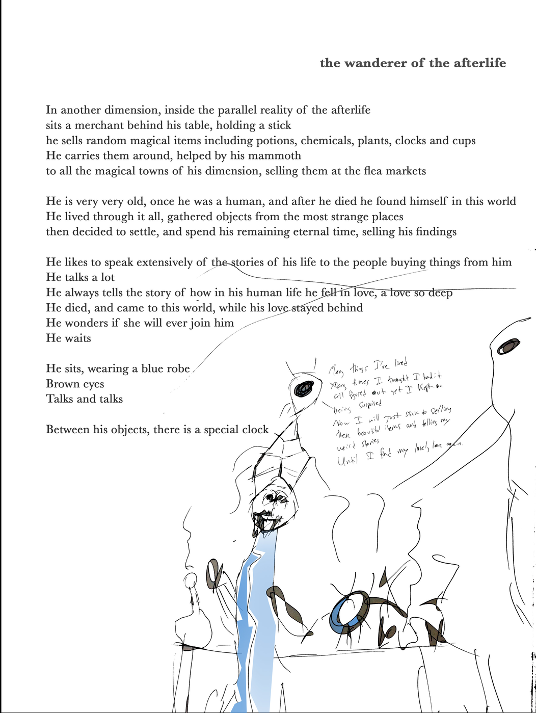 Coil I was dedicated to the creation of imaginary beings/bodies. I designed processes in which I co-created with people the birth of these new beings by guiding them into an improvisation within their imagination. Through discussions, writing, drawing and imagination exercises, I channeled each person to create their own “being”, pushing them to define with precision the qualities of these new bodies; their context and stories. I worked with people from different age groups; people that have a connection to the art world and that don’t; people coming from different backgrounds.