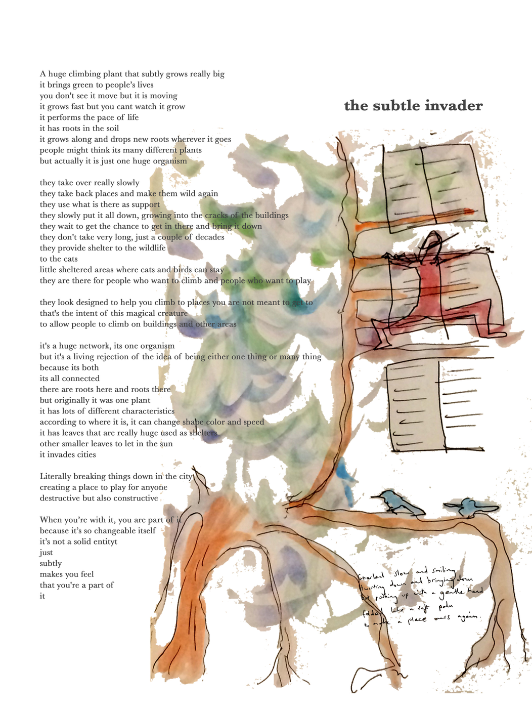 Creatures that we intuitively create and that allow bringing the urban and “natural” world alive in reconciliation, the human back into nature, and not a mere observer of it. As Tim Ingold discusses, looking at nature as a mere observer, as a detached scientist looks from a distance, is an illusion (Tim Ingold, The Perception of the Environment, p. 20). Nietzsche extensively spoke of the fact that modern society went towards a disenchantment of the world; leaving an abstract man without any guidance from myth that categorizes everything with science and logic. He believed that this condition of demystification would have very strong influence on society (Straus, 2019, p. 2).